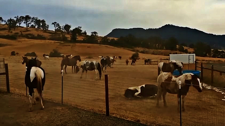 These horses are more than happy at Duchess Sanctuary and you can tell by what they are doing. They are rolling over on the ground together and they seem to be having the time of their lives. Although the majority of them rolled over, there were a few horses who thought that this was a little bit too much to do.