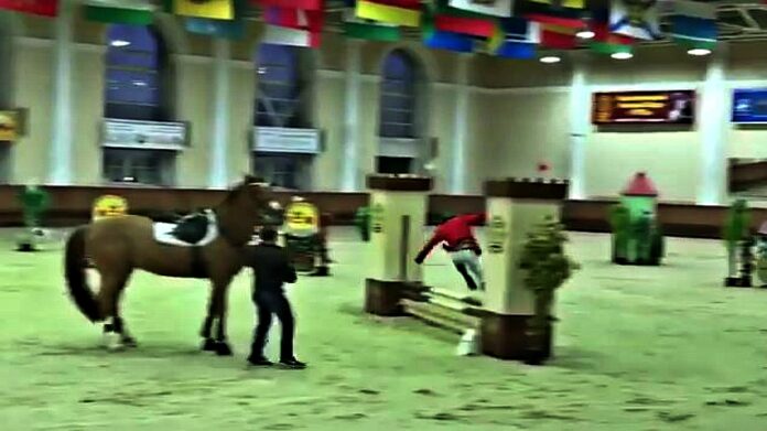 Hilarious Jockey Jumps Over The Showjumping Obstacles Alone