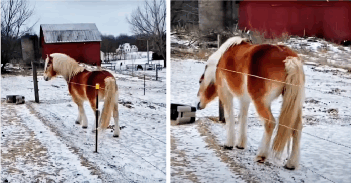 The scene is truly hilarious, and it’s hard not to chuckle at the horse’s audacity. The horse looks like a pro when it comes to escaping the fence, and it seems to have a few tricks up its sleeve. Many people might wonder if the fence is even working properly or this horse is simply too smart for it. Horses are known for their intelligence and problem-solving abilities, and this horse is no exception. Whether the fence was working properly or not, this is still a smart and mischievous horse.