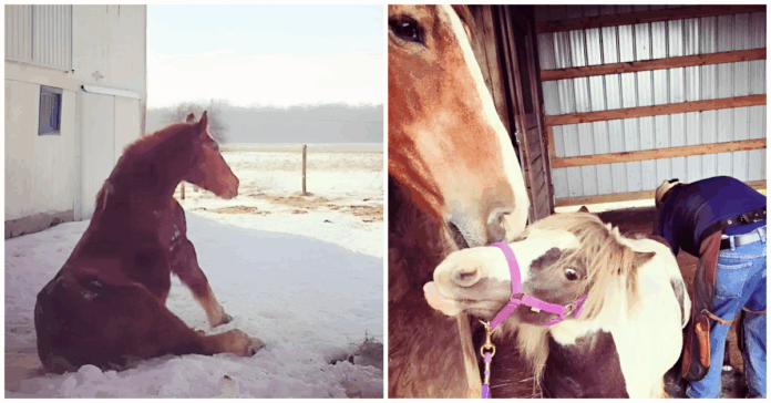 However, Gidget’s passing had a profound impact on Peggy, leaving her visibly grief-stricken. For days, Peggy lingered by Gidget’s halter, unwilling to leave, as if waiting for her friend to return. The sanctuary revealed that the loss occurred five years ago on an Easter Sunday, marking a significant and painful memory for Peggy. In the weeks following Gidget’s death, Peggy’s health deteriorated drastically; she developed laminitis, a painful inflammatory condition in her hooves, triggered by intense grief and compounded by her existing health issues, including equine metabolic syndrome and insulin resistance.