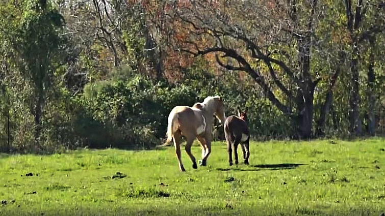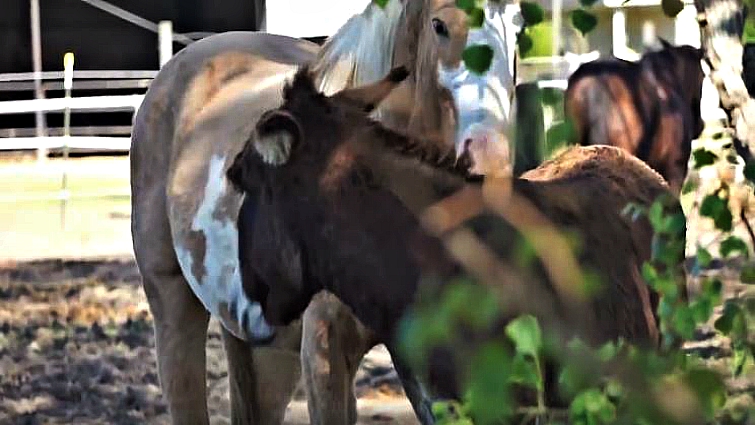 We see a horse named Ashton spending time with Job the donkey as they waited to be adopted. Ashton is described as a “handsome 12-year-old paint gelding with a winning personality,” while his buddy is said to be “a rough and tumble donkey with a love for adventure.”