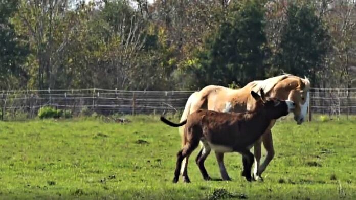 We see a horse named Ashton spending time with Job the donkey as they waited to be adopted. Ashton is described as a “handsome 12-year-old paint gelding with a winning personality,” while his buddy is said to be “a rough and tumble donkey with a love for adventure.”
