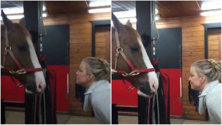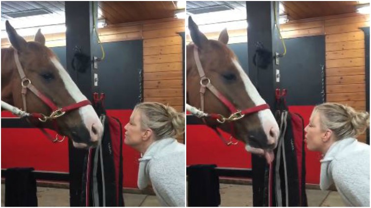 This is an excellent way for horses to approach you because it permits them to show their love and to check for secret treats! In the video shown below, you will see a beautiful horse and his trainer who can’t stop giving each other kisses. The cute horse enjoys sharing kisses and cuddling with his owner.