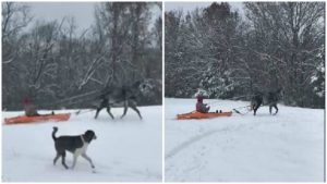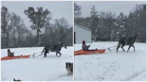 She is driving a kayak which is pulled by a horse in the middle of the snow and she does know how to enjoy herself in the middle of the winter. Even though this might look like fun she should be really cautious because if the horse is running and stops the kayak might fly right up into his haunches. Watch the video and share your opinions with us!