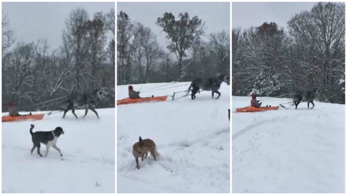 She is driving a kayak which is pulled by a horse in the middle of the snow and she does know how to enjoy herself in the middle of the winter. Even though this might look like fun she should be really cautious because if the horse is running and stops the kayak might fly right up into his haunches. Watch the video and share your opinions with us!