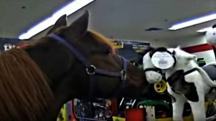Perhaps this with inspire you to do the same thing while deciding for Christmas presents for your loved ones. Let’s meet Clifford, a very beautiful Morgan Horse, who also happens to be extremely thoughtful. Here he is, picking out a Christmas present for his friend Til at the Tractor Supply store.
