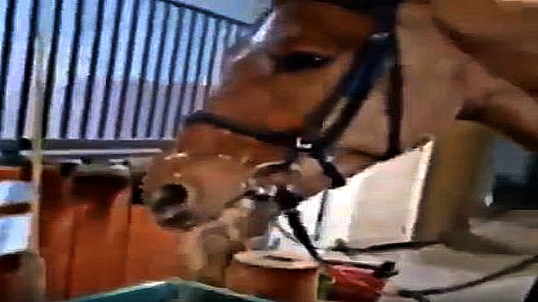 “You are not you when you’re hungry” is one of the most famous quotes coming out of a Snickers commercial and the horse is the video is definitely the example. You can tell that it is very hungry and immediately starts eating its food; the horse is even putting its head inside the food.