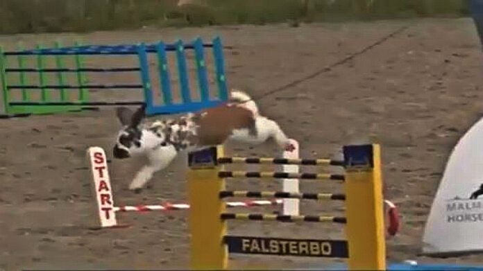 Showjumping is one of the most entertaining disciplines with main focus horses, but lately, it seems to have inspired another discipline, rabbit show jumping. Rabbit show jumping or Kaninhop (also called rabbit agility or rabbit hopping) is modeled after horse show jumping, on a scale to suit rabbits.