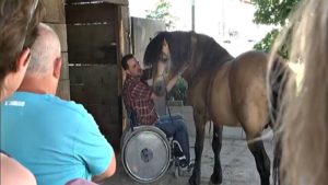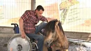 The warmth and three dimensional movement of the horse is transmitted through the rider’s body, gradually making it more relaxed and supple, reducing spasms and improving balance, posture and co-ordination. The disabled know this and more and more of them are into riding. Some of them even are passionate about riding and despite their disability they want to go on riding. What you are going to watch in this video is a really considerate horse who lies down making it easier for the disabled man to get on his back. This horse seems to know that the man has a disability.