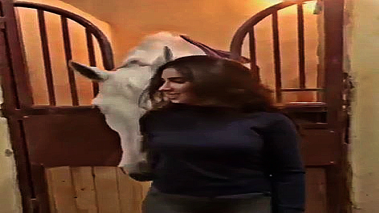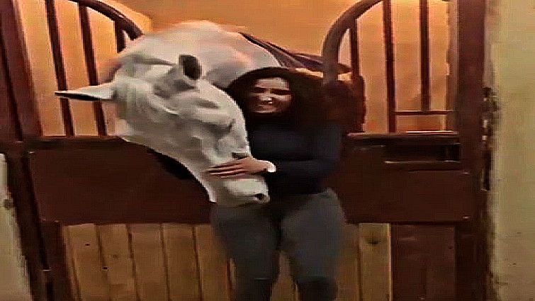 He put his head forward and immediately “grabbed” his owner and started hugging her again. It looks like the horse feels really comfortable close to his owner so he does not like the idea of her living the stable.