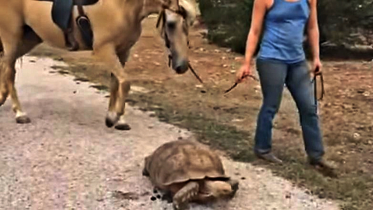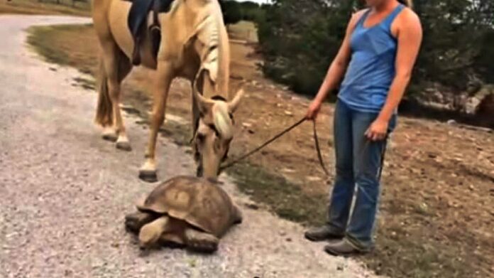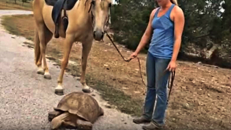 Although, it might be a little more difficult for Stoney to climb on board for a ride atop Sunny any time soon. That shell is just a bit too clunky to fit on any saddle. They’ll probably have to stick to some nice long, slow walks together. Do you have videos of your horse watching an animal for the first time? If yes, please feel free to share them with us either through messaging or dropping a comment in the comment section.