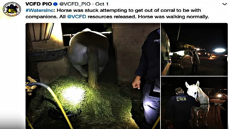 The rescue took about an hour, but thankfully the poor animal was eventually released from the trap. The authorities say that, despite the mishap, the horse was walking normally after he was freed and didn’t appear to be injured in any way.