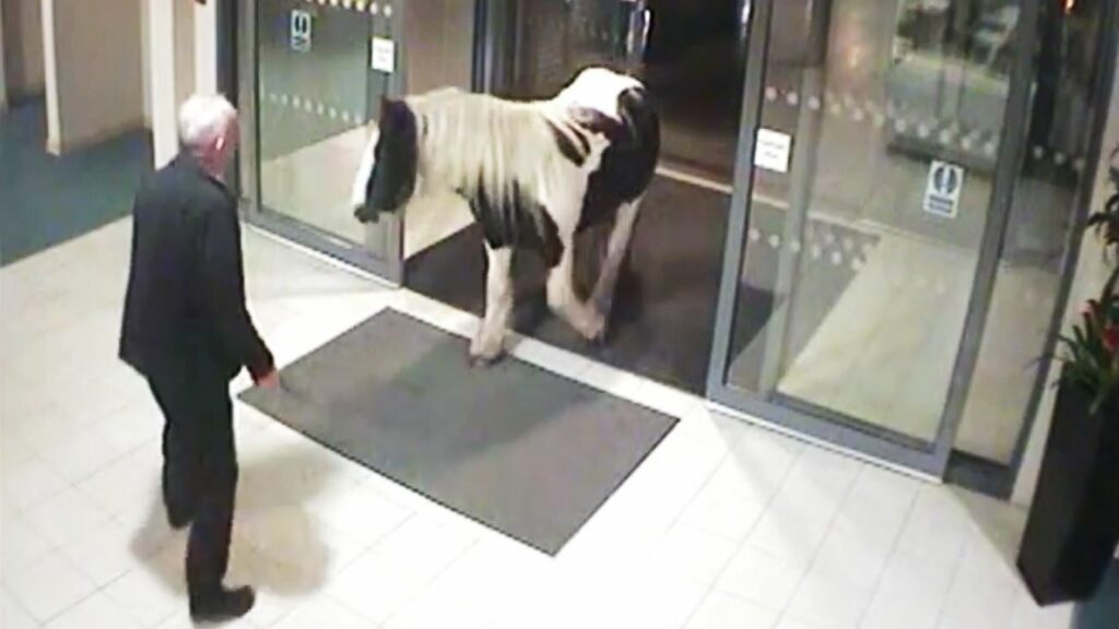 This hilarious footage shows a runaway pony walking into a Cheshire police station. It’s impossible to work out whether the four-legged animal was applying for a police horse job or handing itself in. Officers at Cheshire Police headquarters in Winsford were surprised by their equine visitor in the early hours of the morning.