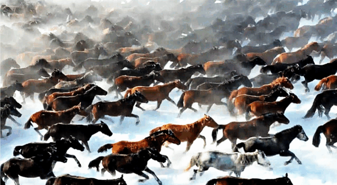 The Yili has great endurance and can travel long distances at a good rate of speed and that’s why it is possible for the herdsmen to act in this way because if horses didn’t endure and travel long distances they wouldn’t be able to survive. Watch this amazing aerial footage of thousands of Yili horses galloping in the snow!