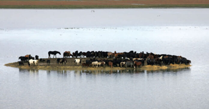 Nearly 200 horses were stranded on a small island in the Netherlands. A huge storm surge pushed seawater into the earth outside the dikes of Marrum, a town 90 miles from Amsterdam. Nineteen horses drowned or died of exposure on the muddy knoll that was turned into an island.