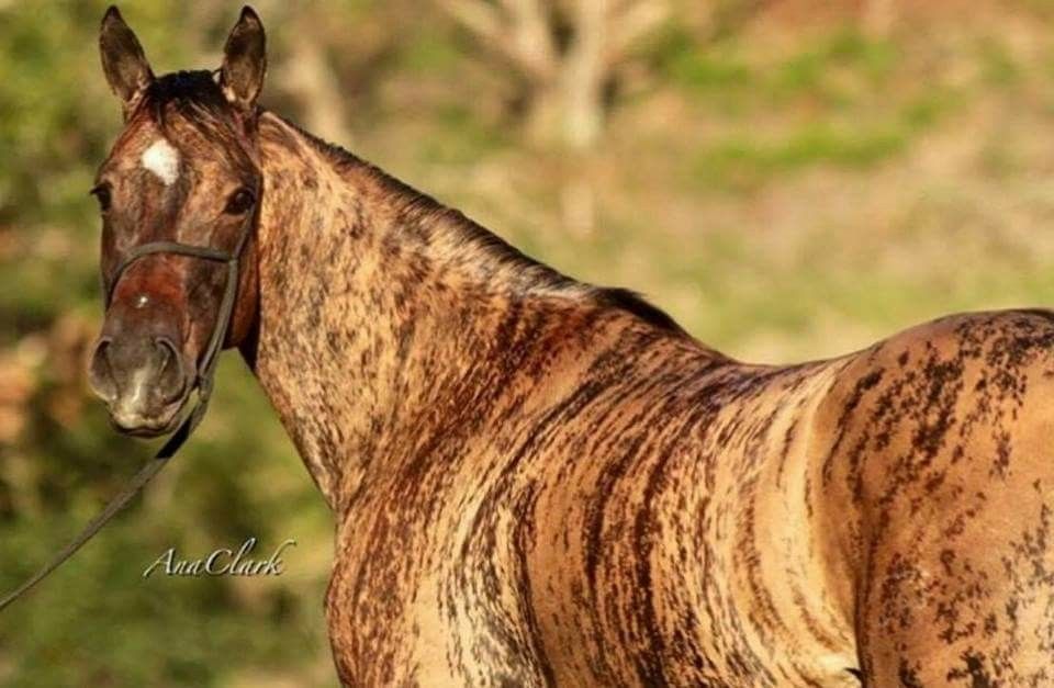 1. Brindle is very rare and the results can be very striking in nature. But the color comes from an accident during development, where two color traits fuse together, so horses of this type cannot reproduce their color.