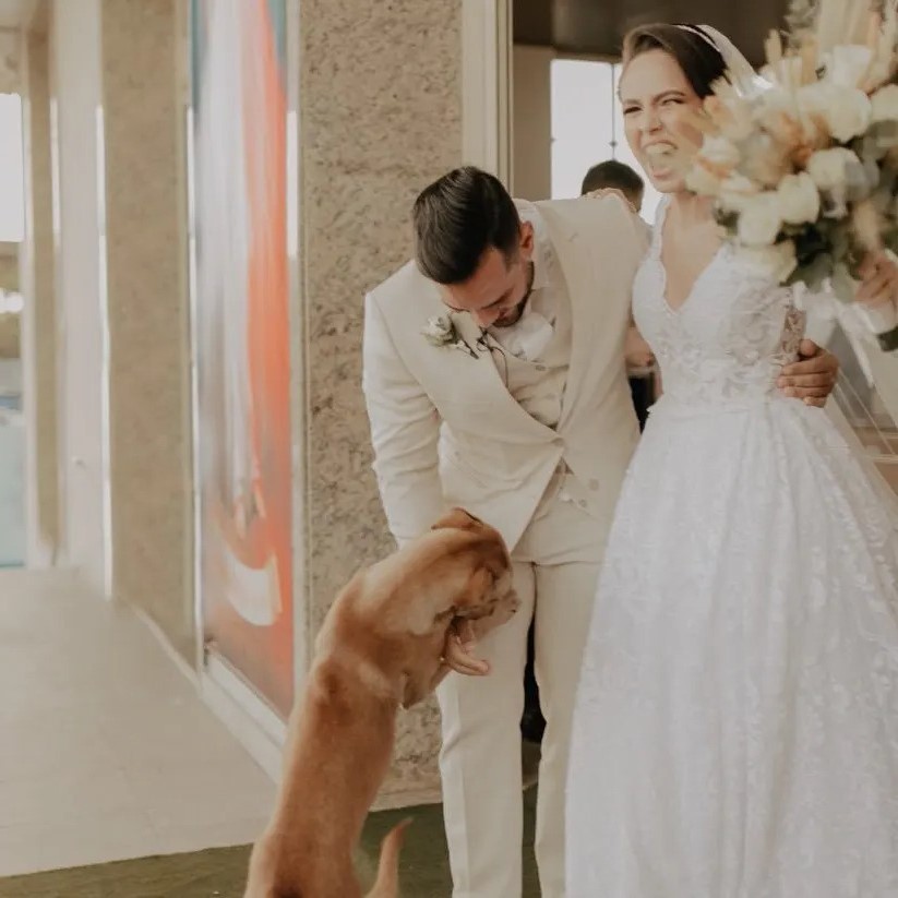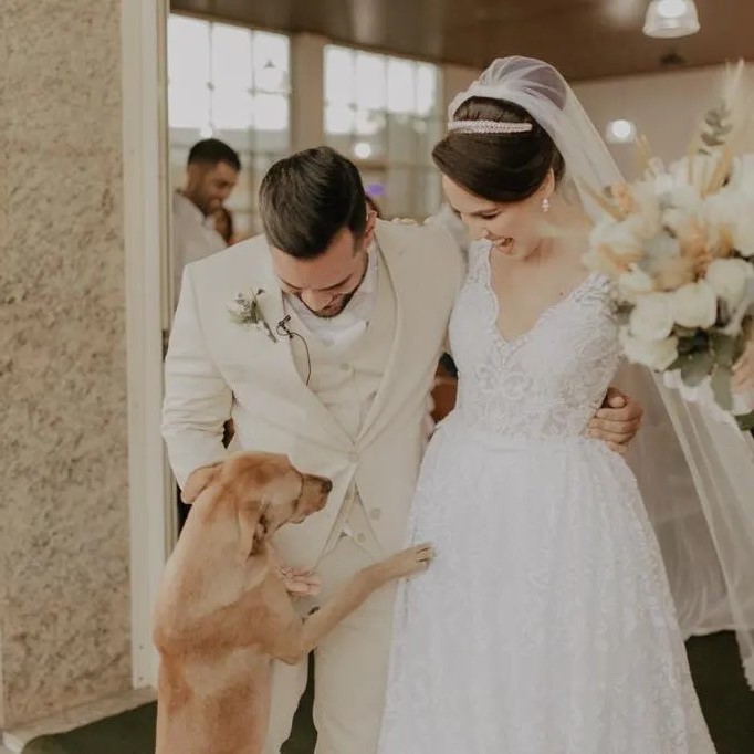 In the world of weddings, uninvited guests are usually unwelcome, but there’s one extraordinary exception to this rule – Caramelo, the pawesomest wedding crasher ever! Caramelo’s unexpected appearance at a random couple’s wedding turned out to be a heartwarming story that melted hearts around the world. Tamíris Muzini, an interior designer, and her fiancé, Douglas Robert, had always shared a dream of having a dog. Little did they know that destiny had something extraordinary in store for them.