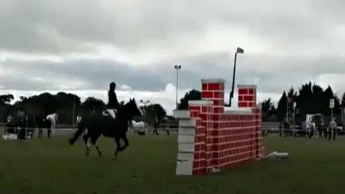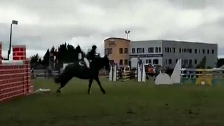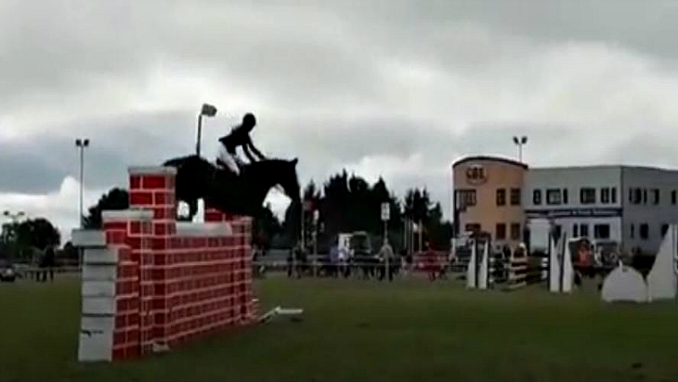 The audience was amazed by what an Irish cob managed to do at Claremorris Agricultural show in Ireland. When we think of a cob we probably don’t consider it to be a great jumper and especially to jump that high. Even the Tara the rider who has owned Blue since it was one year old was surprised and said, “I didn’t think it would go so high and I didn’t think the show would be as big as it was! He’s never jumped anything that high. He competes up to 1.25 showjumping — he’s just a freak.