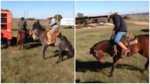 The person who captured all the action on video burst out laughing when he saw this happening and it surely will make you laugh your lungs out as well. A group of friends are having fun together riding their horses when one of them decides to ride his horse backwards. He does that but when the horse stops it’s like a button is pushed commanding him to be ‘cold back’.