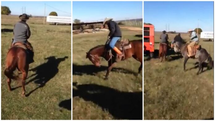 The person who captured all the action on video burst out laughing when he saw this happening and it surely will make you laugh your lungs out as well. A group of friends are having fun together riding their horses when one of them decides to ride his horse backwards. He does that but when the horse stops it’s like a button is pushed commanding him to be ‘cold back’.