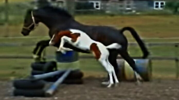 In the video shown below, you’ll have the opportunity to watch complete jumping dressage executed by a foal. He is simply adorable, and I’m pretty sure that as soon as you see him perform, you will agree with me. To tuck the legs like that is difficult even for mature horses let alone foals, that’s why this foal has an incredible talent.
