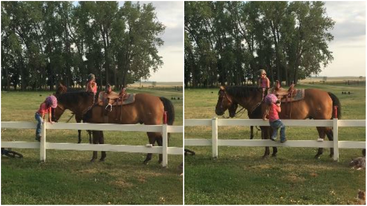 Little Girl Shows Creative Solution Using A Fence To Get On Her Horse