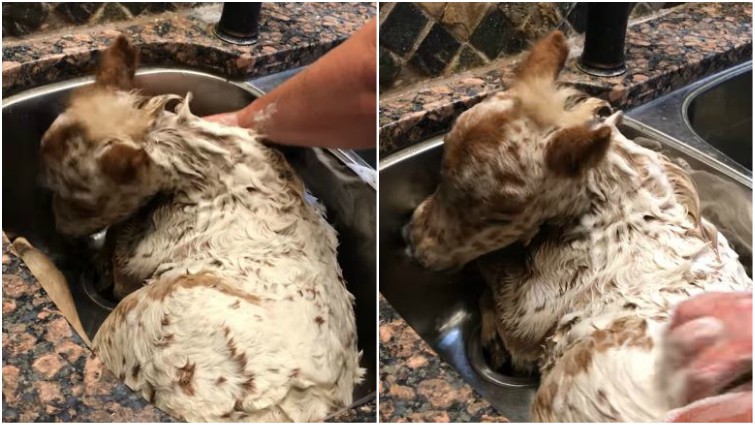 She is so small that she had no difficulty staying in the kitchen sink. Make sure to watch the lovely video posted below because I’m pretty sure it will brighten your day.