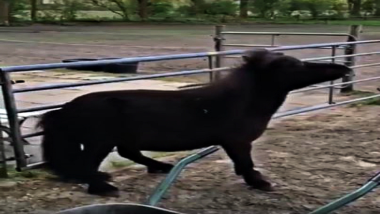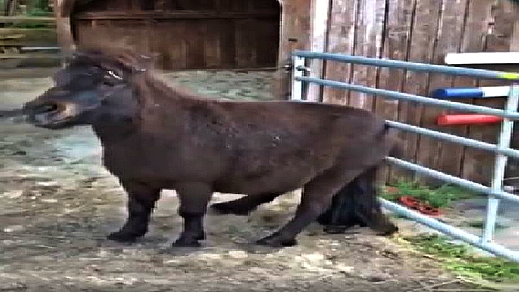 The feeling of scratching is one of the most annoying feelings in the world and the pony in the video does not disagree with this statement at all. It is in a position that it can no longer resist the feeling of scratching so the pony finds a way how to do so.