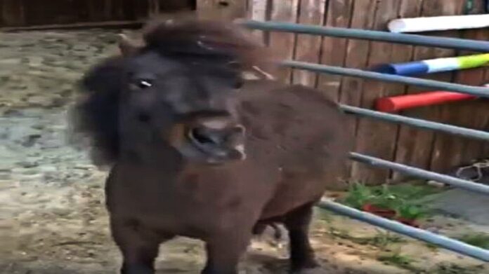 The feeling of scratching is one of the most annoying feelings in the world and the pony in the video does not disagree with this statement at all. It is in a position that it can no longer resist the feeling of scratching so the pony finds a way how to do so.