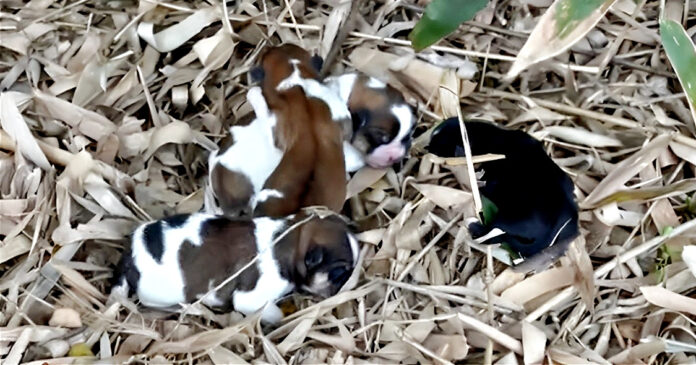 In the quiet embrace of the forest, a man on a simple mission to collect firewood stumbled upon a scene that would touch the hearts of many. It was the soft, desperate whimpering of life clamoring for survival that drew him closer, leading to a discovery both heartbreaking and hopeful. There, on a bed of leaves under the canopy of towering trees, lay four newborn puppies. Alone, vulnerable, and trembling with cold, their tiny cries pierced the silence, a poignant plea for the warmth and safety of their mother’s embrace. The man, moved by the sight of these fragile beings, decided to wait, hoping for the return of the mother dog. As the minutes turned into hours with no sign of her, it became painfully clear that the puppies were abandoned, their chances of survival dwindling in the cold forest air.