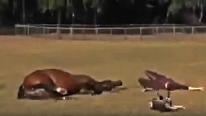 The man, horse, and dog all roll on their backs at the same exact time. While there are certainly a lot of differences between everyone in this video, one thing is for certain: they all have feeling and they all love each other very much! Whether you’re a human or an animal, sometimes it’s fun just to hang out with your best friends.