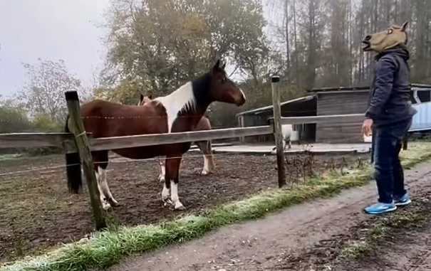 The man in the following video decides to test the reaction of the horse by wearing a horse masks. He even acts silly in front of the horse. However, horse’s reaction is simply hilarious. After curiously following the activities of the man, horse looks at him with a funny face. I simply can not stop laughing from this video. Please take a look at the video for more, let us know your opinion on the video, and do not forget to spread out the hilarious video with your friends and family on social media in order to make them laugh as well.