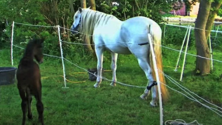 A mare will always keep her foals away from risk and whenever she doubts that her babies are at danger, the mare will always go to rescue them under any circumstances. The mare in the video shown below displays her protective maternal sense the second she notices danger around her baby. Her foal was hardly standing on its feet and she was only doing her work- not letting anyone or anything get near her beautiful child.