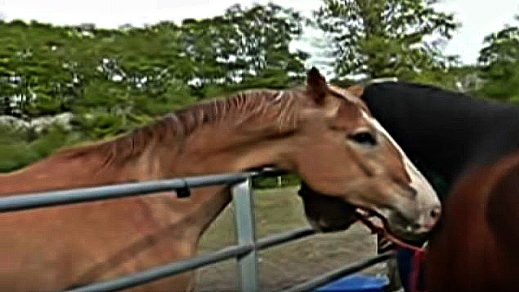 Well, this is the same with these two beautiful horses who have been apart from each other for more than 8 weeks. Roxie had been in the South Shore Equine Clinic in Plympton, MA all that time being treated for wounds after she was impaled in the neck by something.