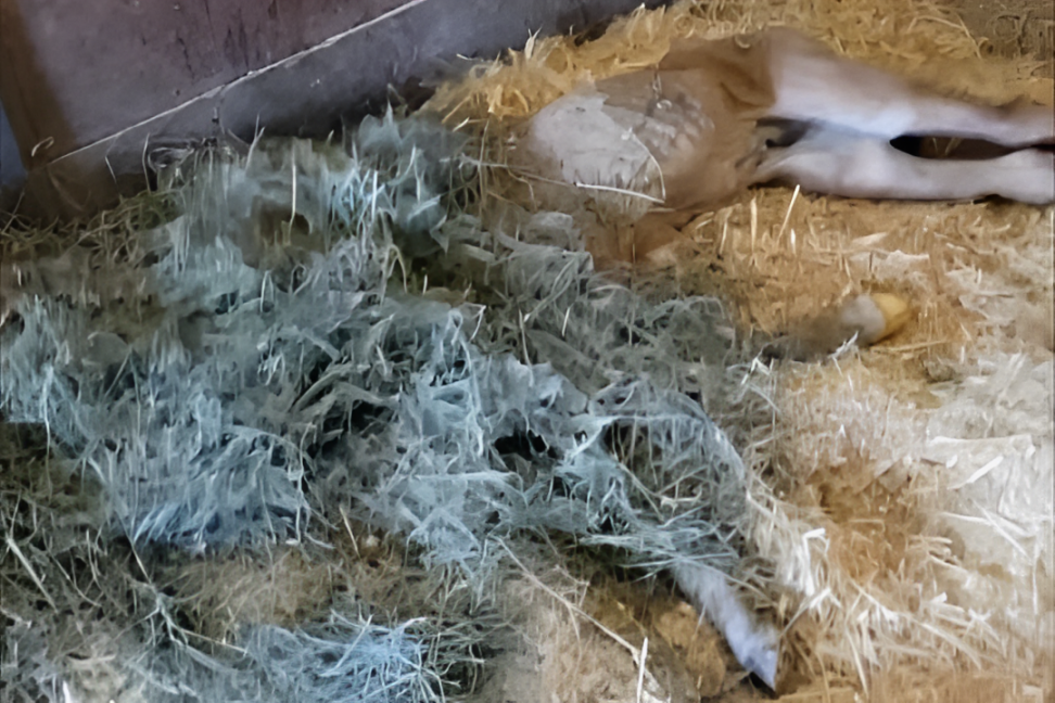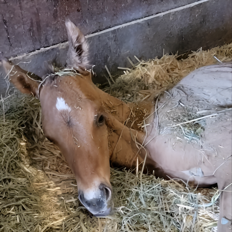 The mare’s actions are a beautiful example of maternal instincts at work. By blanketing her foal with hay, she not only guarantees his comfort and uninterrupted sleep but also secures some time for herself to replenish and relax. This natural behavior is a testament to the saying that a mother’s love knows best, transcending species. The mare’s intuitive care ensures that her foal is shielded from the sun, mimicking the dark, serene environment of the womb, which helps lull the young one into deeper rest.