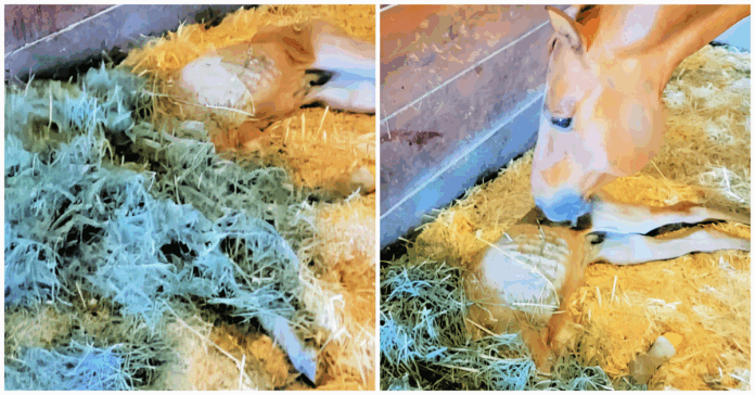 In a heartwarming display captured on video, a mother horse demonstrates the depth of her affection and care for her newborn foal. This touching scene, which vividly illustrates the strong maternal bond shared by these majestic animals, captures the essence of motherhood in the animal kingdom. As viewers, we are privileged to witness the mare’s instinctual protection and nurturing, which is not only moving but deeply resonant, reflecting the universal nature of maternal love.