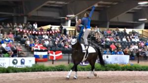 What you are going to watch in this video is a Pas Des Deux (a dance for two people) vaulting performance which if described in one word is ‘stunning.’ A performance that fully deserved a gold medal. Having been out over the last year with a broken leg, Lorenzo Lupacchini comes back strong to join his partner Silvia Stopazzini to show an energetic and incredible show. There are some people who think that this is weird or silly and it has nothing to do with horseback riding but it is all the contrary.