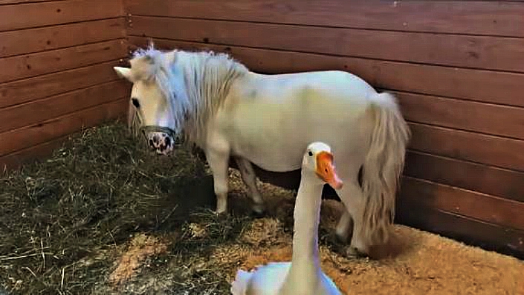 Miniature Horse And Goose Finally Find A Permanent House That Accepts Them Together