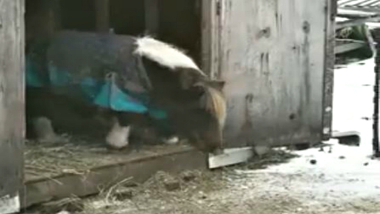 This adorable video was shared on Facebook by Beth Rose with the caption, “When it’s snowing, so your human puts your hay inside, but the step is too high and you are too short. So you throw a temper tantrum.”