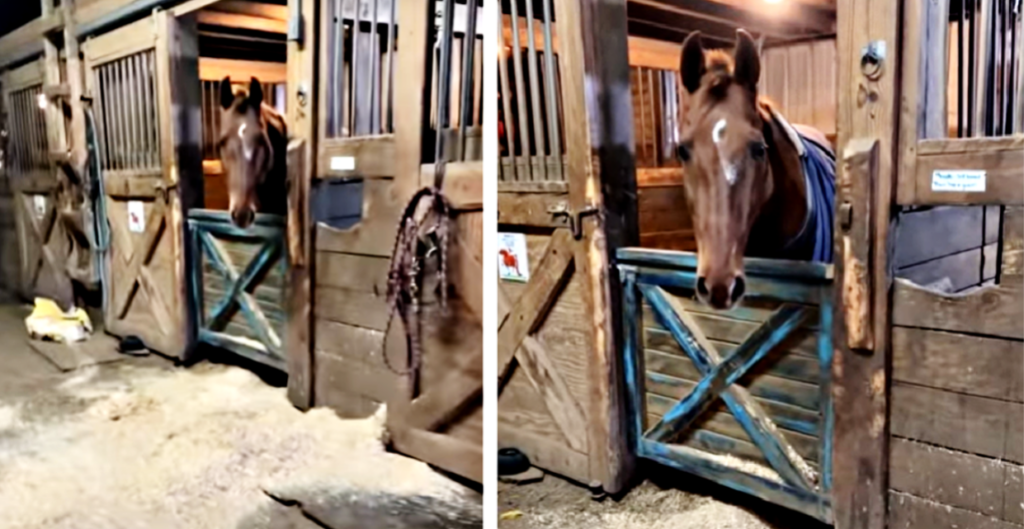 Horses are known for their playful and sometimes mischievous nature, and one horse named Bentley is a prime example of this. Recently, Bentley’s owner was in for a surprise when she found that her horse had made a mess while she was cleaning stalls. Bentley had gotten bored and decided to rip into a bag of shavings that she was using temporarily, causing the shavings to spread all over the ground. Despite the mess, Bentley’s reaction was hilarious. When asked by his owner what had happened, Bentley shook his head sheepishly, as if to admit that he was the one responsible for the mess. This gesture was not only amusing but also showed the great personality of the horse. Bentley’s owner states that he is her favourite horse because of his amazing personality, and it’s easy to see why.