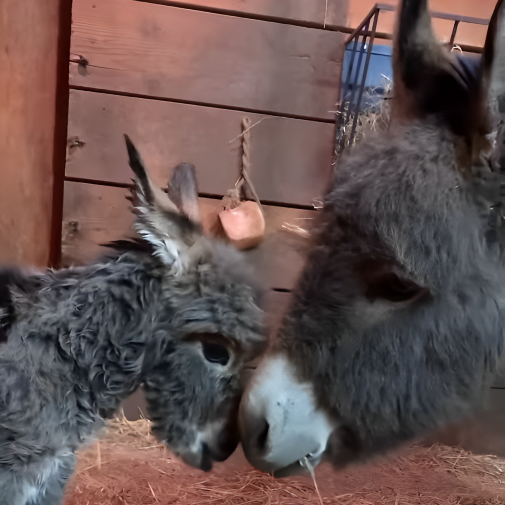 The sight of a mother donkey gazing at her newborn with overwhelming affection is a heartwarming scene that encapsulates the universal language of maternal love. This touching moment between the donkey and her foal, a small, fuzzy creature, reminds us of the powerful emotional connections that animals share with their offspring. Baby animals, especially those as endearing as donkey foals, have an innate ability to soften even the hardest hearts. Observing such tender interactions in the animal kingdom not only brightens our day but also deepens our appreciation for the depth of animal emotions.