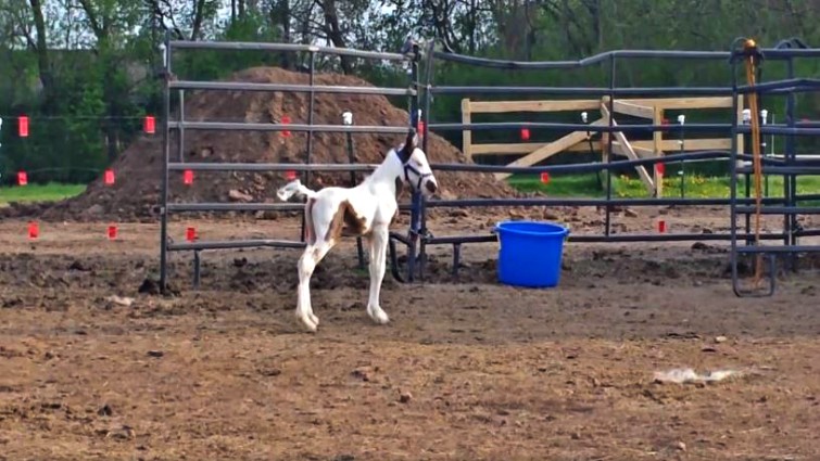 As a matter of fact, there are a few things cuter than seeing a foal trying to learn to run with those legs that look like the foal isn’t in control of them. What you are going to watch in the video is a two-day-year old foal who is just trying to figure out how to use those long legs.