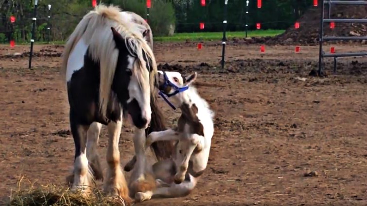 Fortunately, she was not hurt and stood up immediately to her feet but you will watch how the mother reacts. At the moment of the crash the mother is startled and then she is like “What the heck are you doing?” I am so glad that nothing bad happens and I really hope that such a situation does not repeat again not only for this foal, but every other foal out there.