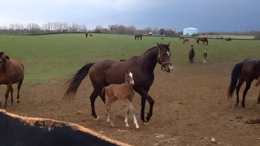 Prepare to be moved as we delve into the enchanting world of foals and their mothers. In this heartwarming video, a baby foal takes its first tentative steps into a field, under the watchful eyes of other horses. This moment not only showcases a mother’s profound love but also the curious and social nature of the herd. As we explore these early interactions, we gain insights into the critical roles of socialization and protection in the life of a young foal, providing a deeper appreciation for the complex social dynamics within equine groups.