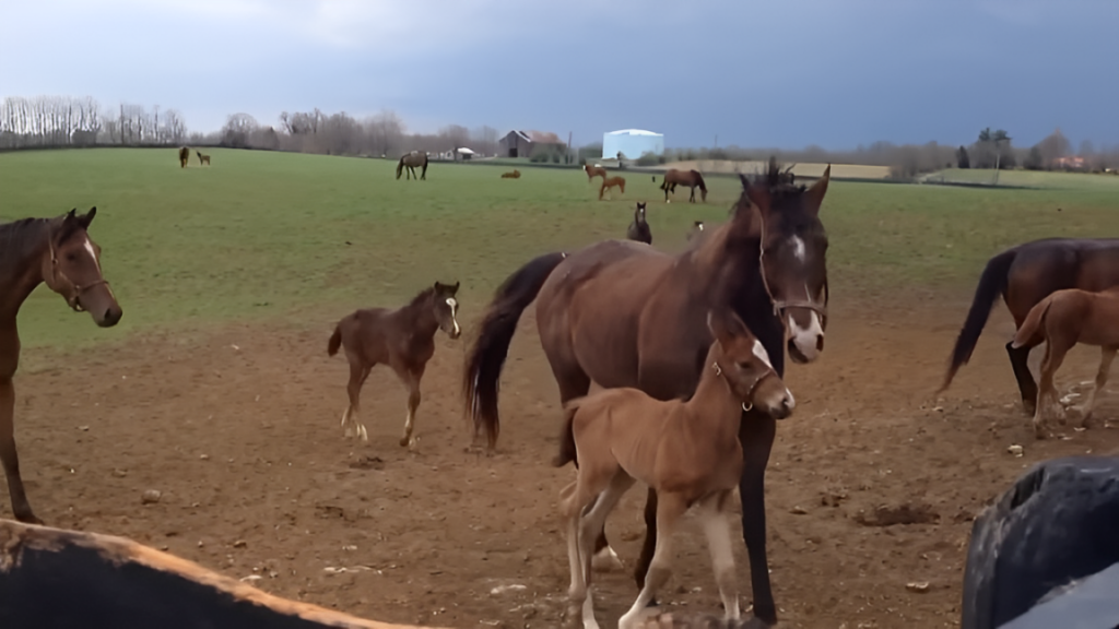 The scene in the field is captivating as the little foal, slightly unsure, navigates its new surroundings. With each step, it encounters the curious gazes of other horses, adding layers of interaction and learning. However, the foal is never alone; its mother, a picture of strength and vigilance, remains close by. Her presence is commanding, ensuring her foal’s safety and setting boundaries with the other horses. This protective behavior is not just instinct—it’s a display of the natural order and leadership within the herd, illustrating the deep-rooted traits that make horses such fascinating creatures.