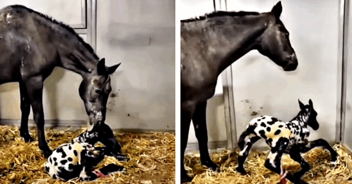 In the following video, a mare gave birth to a beautiful little baby. The video shows the first moments after the baby was born. As you can see from the video, the stunning little baby stands for the first time. This is definitely such a cute scene. For more, please watch the video below! Do not hesitate to let us know your opinion on the video, and please share the video with your friends and family on social media in order to make their day beautiful as well.