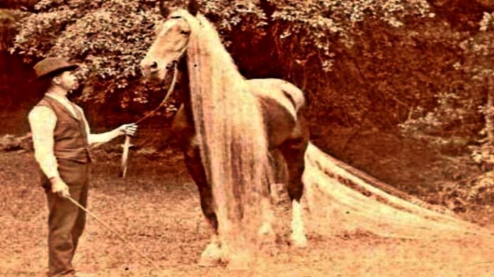 We would like to introduce you to an amazing horse breed with extremely long tails, exceeding 17 feet long. Oregon Long-Haired Wonder Horses are famous for the long horsetails and rich chestnut color. Coming with a concrete example, White wings has a measured tail of 17-feet in length and a mane that was 14-feet long.