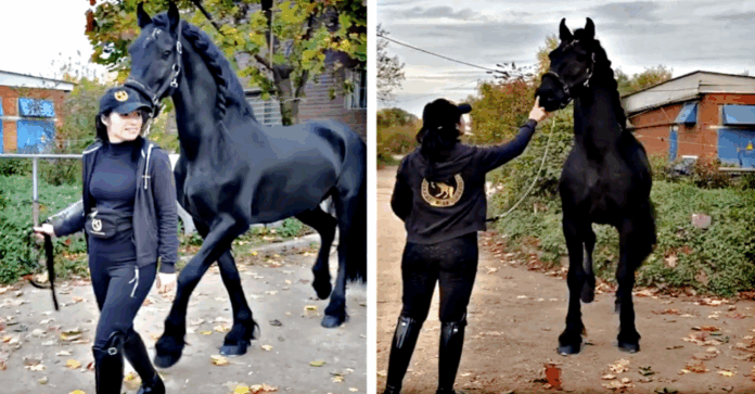 In the following video, you can see a lady showing off her beautiful Friesian horse. This horse is simply majestic. Have a look at the video below for more, let us know your thoughts on the video, and please do not forget to spread out the video on social media with your friends and family in order to make their day beautiful as well.
