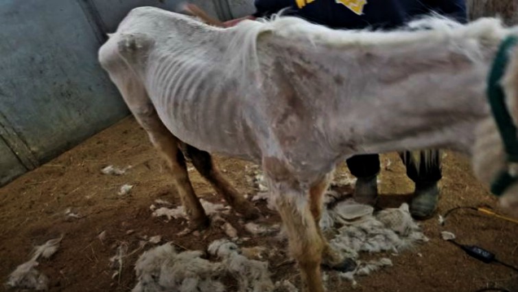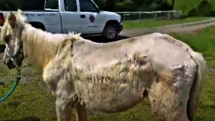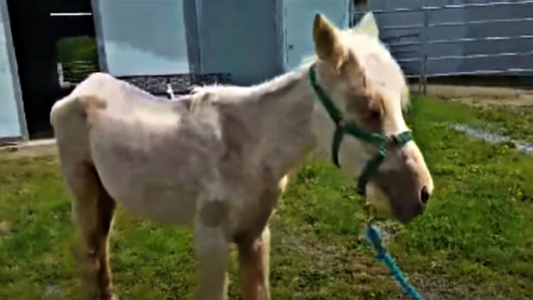 What you are going to watch in this clip is the story of Sansa, a Palomino filly nearly starved to death. She was so emaciated that she barely stood on its feet. Sansa was in an extremely neglected herd of horses that were going to be seized by law enforcement and probably then sent for slaughter. Her body had held onto her winter coat even though it was spring and it had to be shaved to help her cool off.