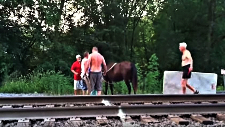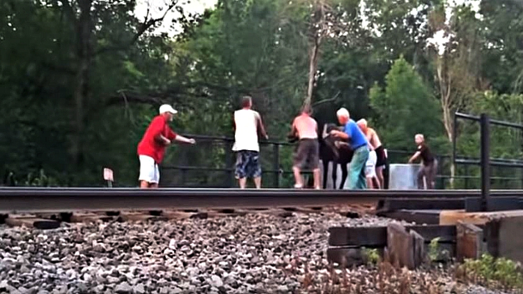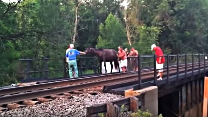 People Join Forces And Saves Horse Stuck On A Railroad Bridge